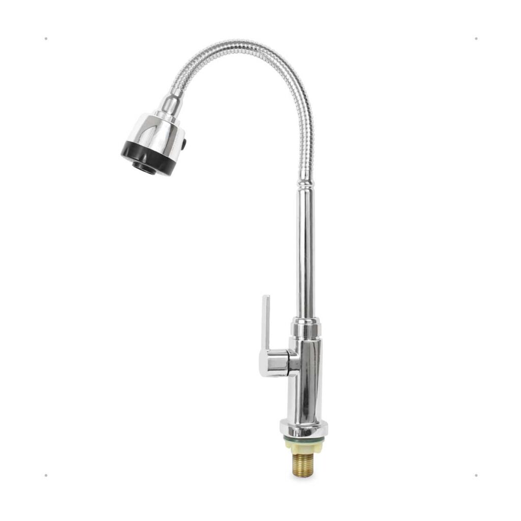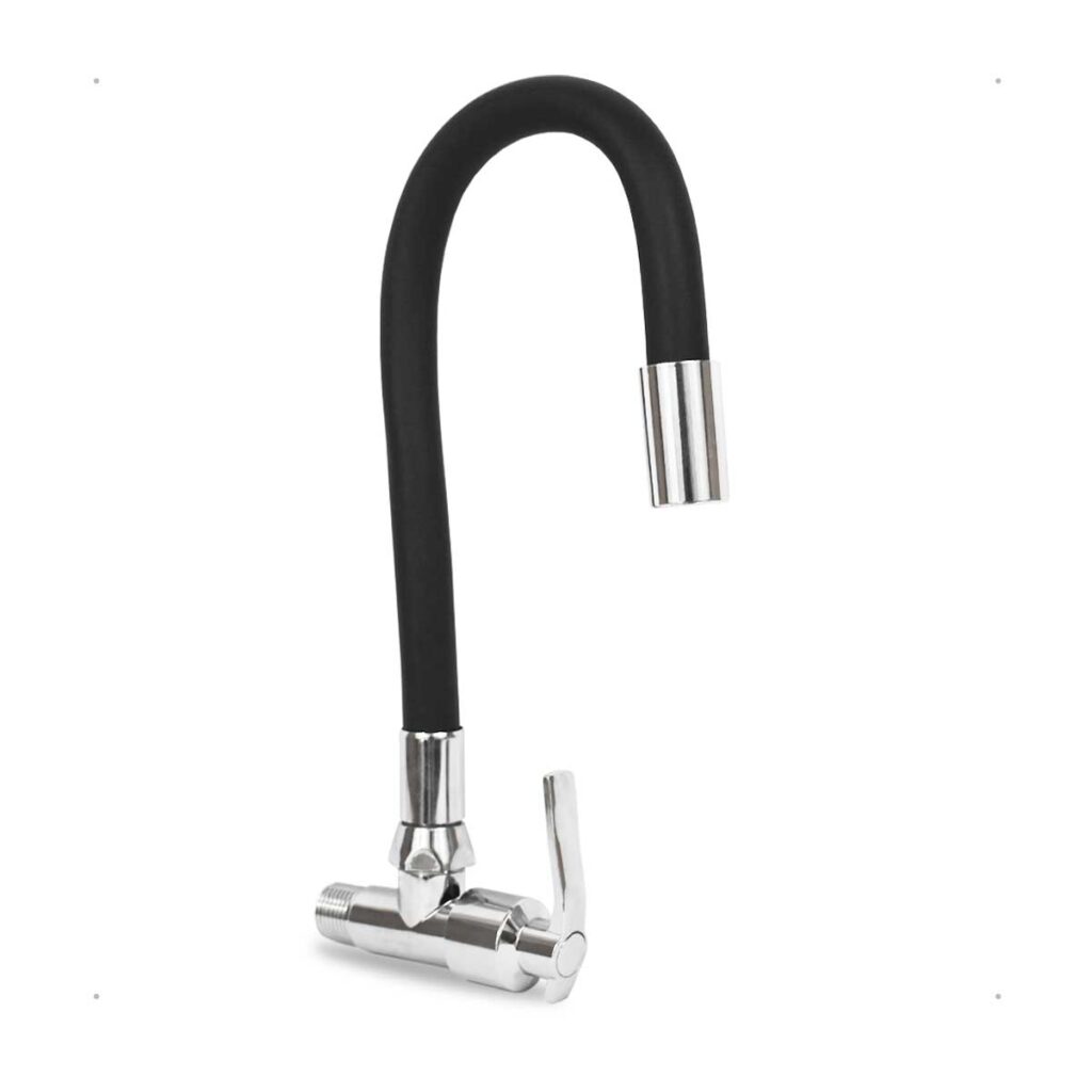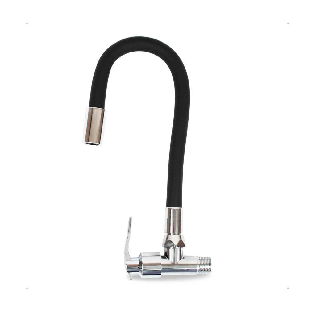 Torneira Cozinha Flexível Fria 2 Jatos Premium Black/Preta Parede Acabamento Cromado ¼ de volta