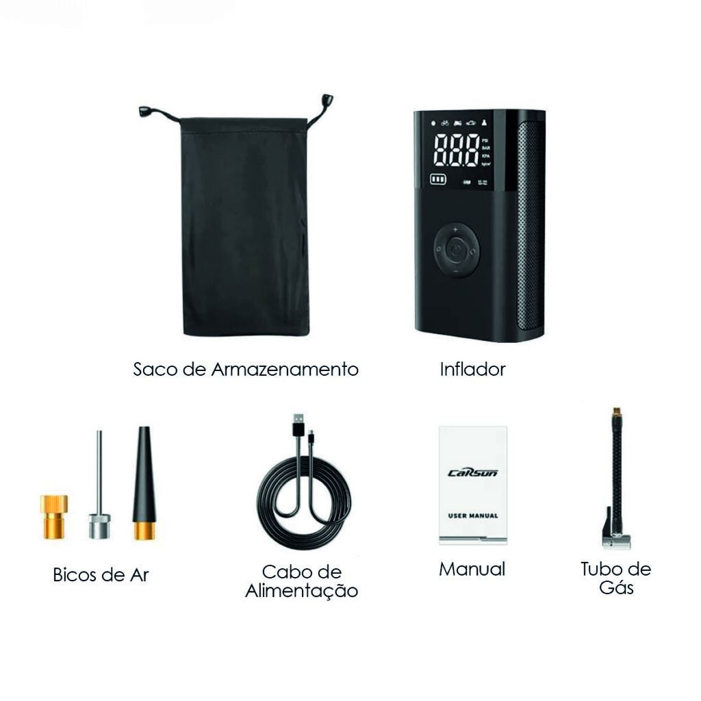 Mini Compressor de Ar Portátil Recarregável, Bateria USB, para Carros, Motos e Bicicletas
